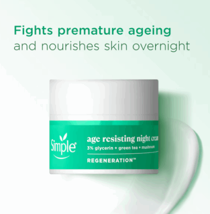 Benefits: Simple Kind To Skin Regeneration Age Resisting Night Cream restores and regenerates dry skin while you sleep, and helps