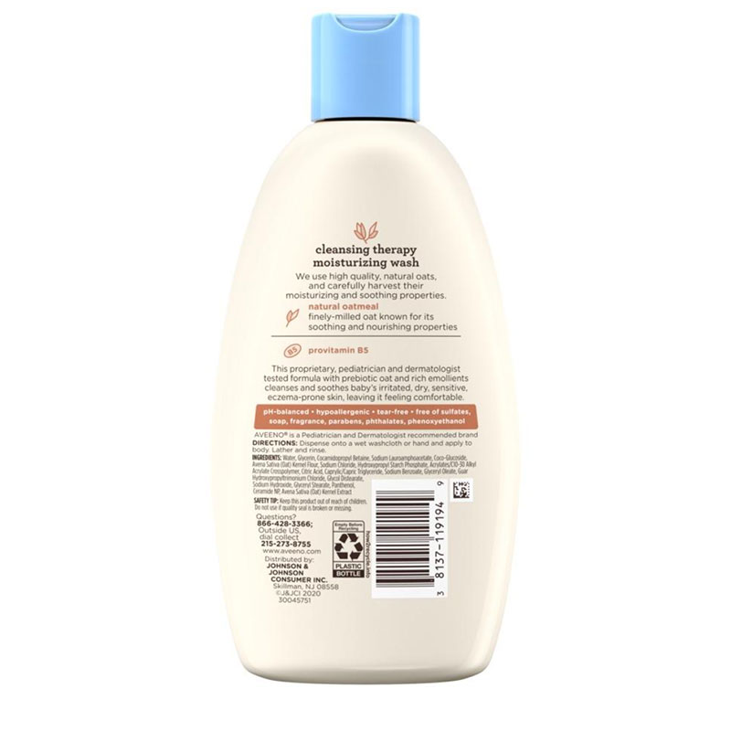 Formulated to gently cleanse without damaging the skin’s barrier. Clinically shown gentle to sensitive skin. Now AVEENO® has harnessed the naturally soothing power of oatmeal in this ultra-gentle wash to help you care for baby’s skin. Developed with leading dermatologists, this breakthrough formula combines soothing oat essence and natural colloidal oatmeal with rich emollients to soften and soothe irritated, extra dry skin. The creamy wash is formulated to gently cleanse without damaging the skin’s barrier, and is clinically shown mild to delicate baby skin. It’s even been awarded the National Eczema Association Seal of Acceptance.