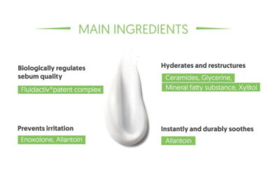 Intensely moisturizes Limits sensation of tightness Soothes redness and relieves the skin Very good tolerance – Non-comedogenic – Can be used as a make-up base.
