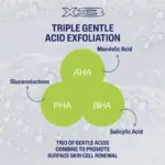 - Formulated with a unique triple acid blend of Salicylic Acid, Mandelic Acid and Gluconolactone, designed to remove excess oil, improve skin tone and retain skin’s moisture while exfoliating