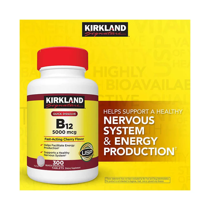 Kirkland Signature Quick Dissolve B12 5000 Mcg – 300 Tablets
